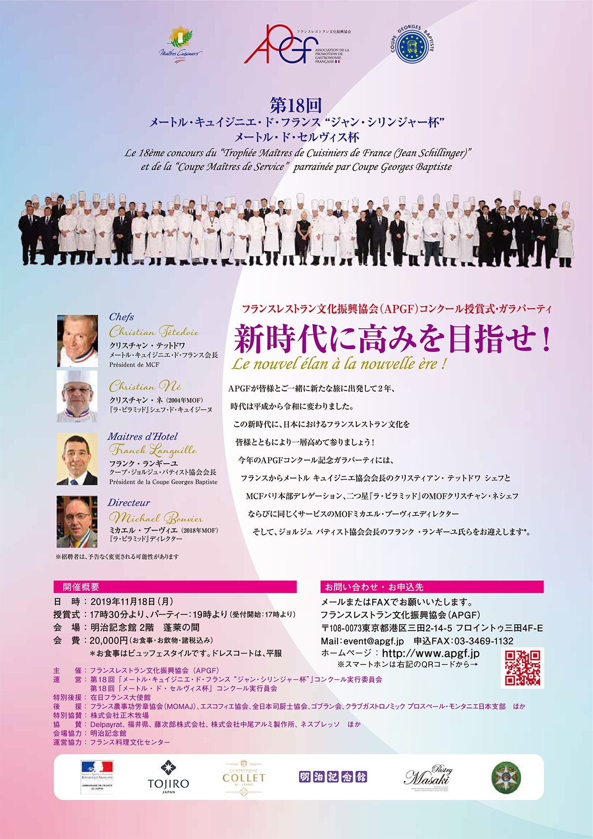 フランスレストラン文化振興協会(APGF)コンクール決勝・授賞式・ガラパーティは、