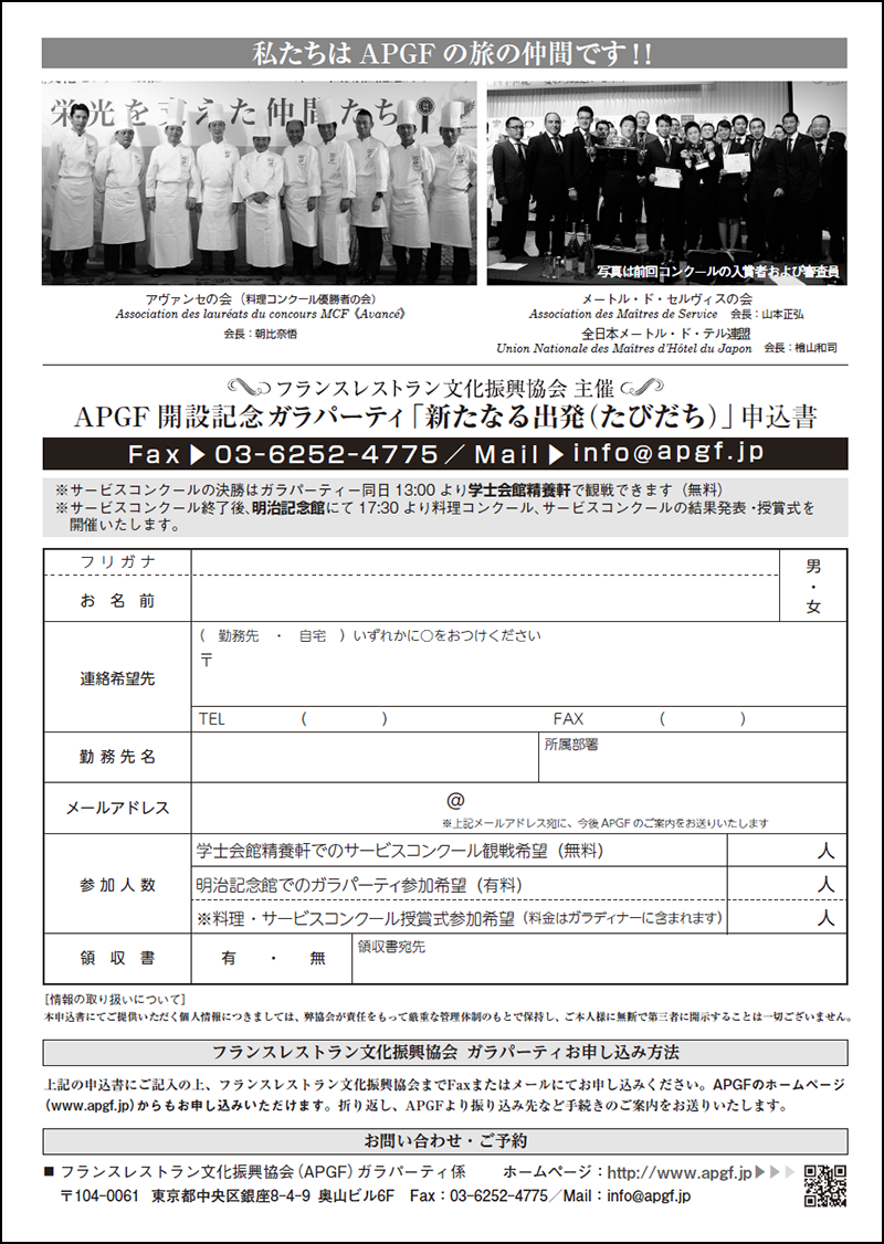 フランスレストラン文化振興協会(APGF)開設記念ガラパーティ